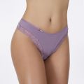 Tanga fio dental na cor romance em algodão egípcio viés em elastano e poliamida. Detalhe em renda nas laterais das pernas e laço com pedra na cintura.Modelagem elegante e muito confortável.