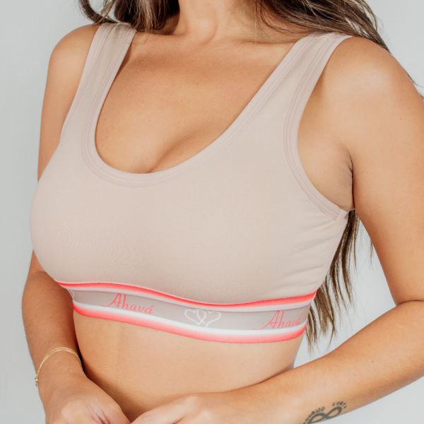 Top Duplo na cor areia, confeccionado em algodão egípcio com elástico personalizado e costas mais largas. Ideal para o seu dia a dia. Proporciona versatilidade e bem-estar. Possui um toque suave e macio, garantindo maior conforto.