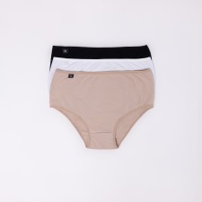 Este kit exclusivo acompanha três calçolas senhora do mesmo modelo, nas cores areia, preta e branca. Desenvolvidas para proporcionar máximo conforto, as calçolas possuem cós largo que oferece ajuste perfeito, garantindo que a peça não enrole ou aperte, adaptando-se suavemente à silhueta.