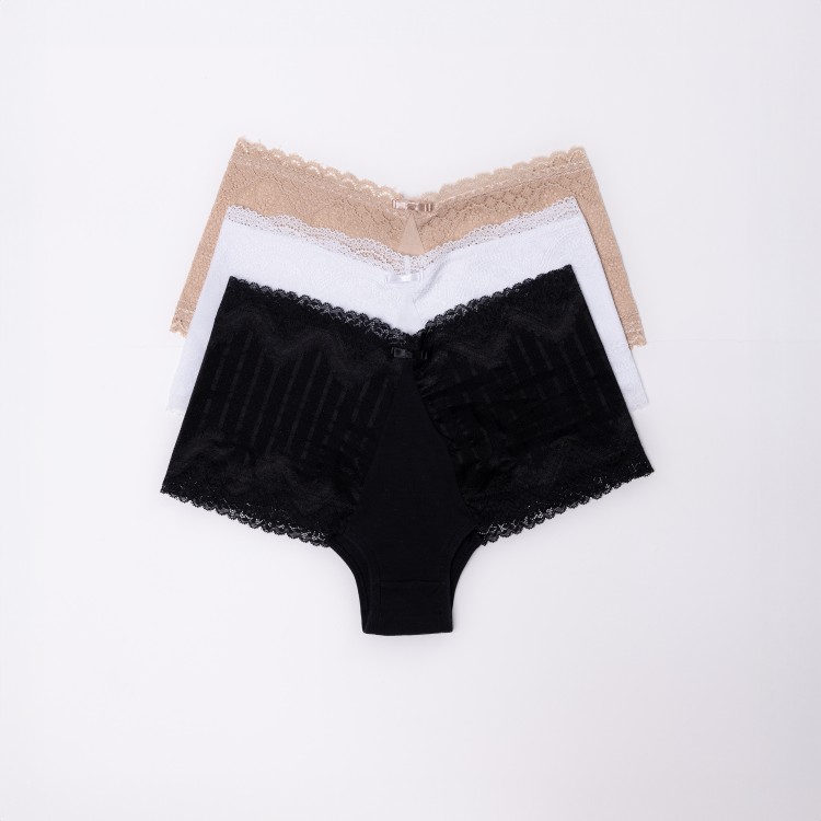 Caleçon em renda toda forrada na cor preta Referência: KIT041HPRETOBRANCOAREIA
