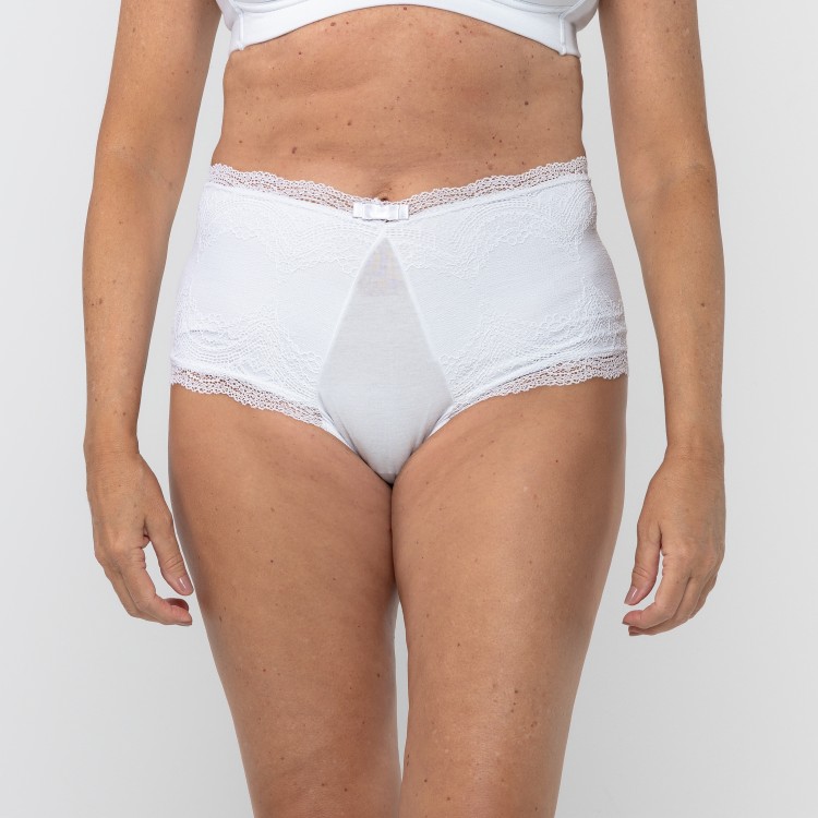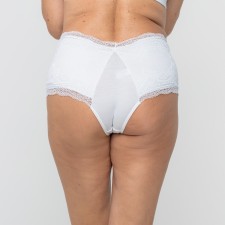 O design sofisticado é realçado pela renda delicada, que cobre toda a peça e proporciona um toque de elegância, enquanto o forro em algodão egípcio garante suavidade e conforto em contato com a pele. As laterais largas proporcionam um ajuste seguro e confortável, valorizando a silhueta.