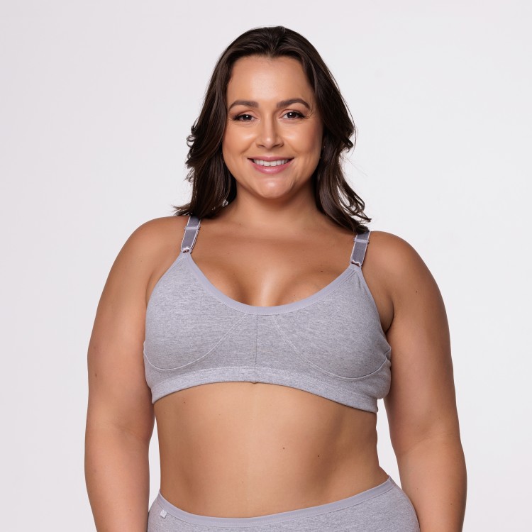 Sutiã em Algodão Egípcio sem Bojo com Alça Reforçada na cor cinza claro