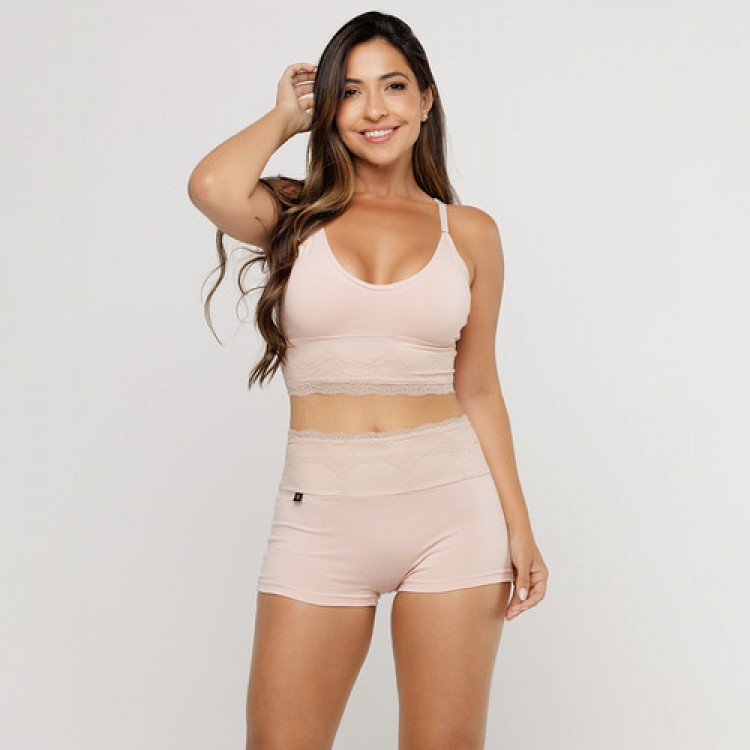 • Cueca Feminina em Algodão Egípcio Renda na Cintura Nude